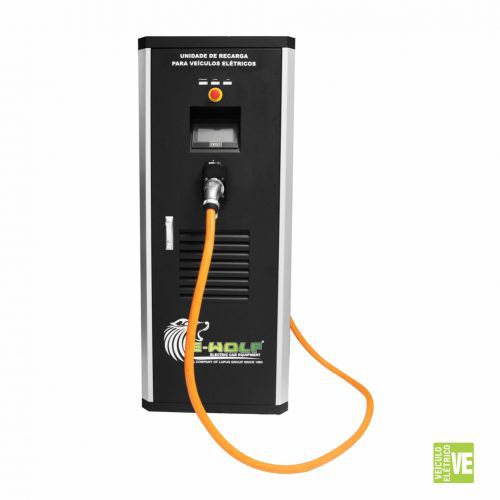 Estação de recarga rápida com 01 conector CHAdeMO DC. Estação com armário em aço e componentes de alta durabilidade. Possui tela interativa sensível ao toque de fácil operação. Peso: 200 kg Medidas: (C) 1100 mm x (L) 950 mm x (A) 1600 mm